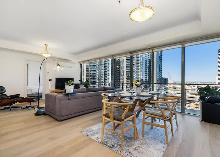 Southbank Towers - Prestigious 16Th Floor 3Br Apt si trova a soli 550 metri da Crown Towers Melbourne. Una passeggiata di 20 minuti porterà gli ospiti alla Biblioteca dello Stato di Victoria. Potrai inoltre raggiungere l'Impianto Sportivo Polivalente Melbourne Cricket Ground, che è a 2 km da questa struttura.